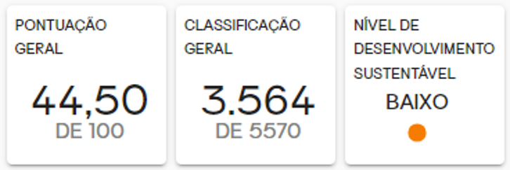 (*) Fontes consultadas: Censo, IBGE, 2022; Índice Sebrae de Desenvolvimento Econômico Local - ISDEL, Sebrae, 2021; Índice de Desenvolvimento Sustentável das Cidades – Brasil; Instituto Cidades Sustentáveis, 2023.